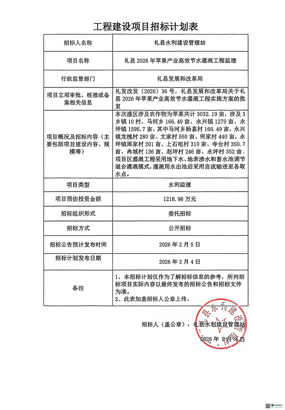 禮縣2026年蘋果產業(yè)高效節(jié)水灌溉工程監(jiān)理