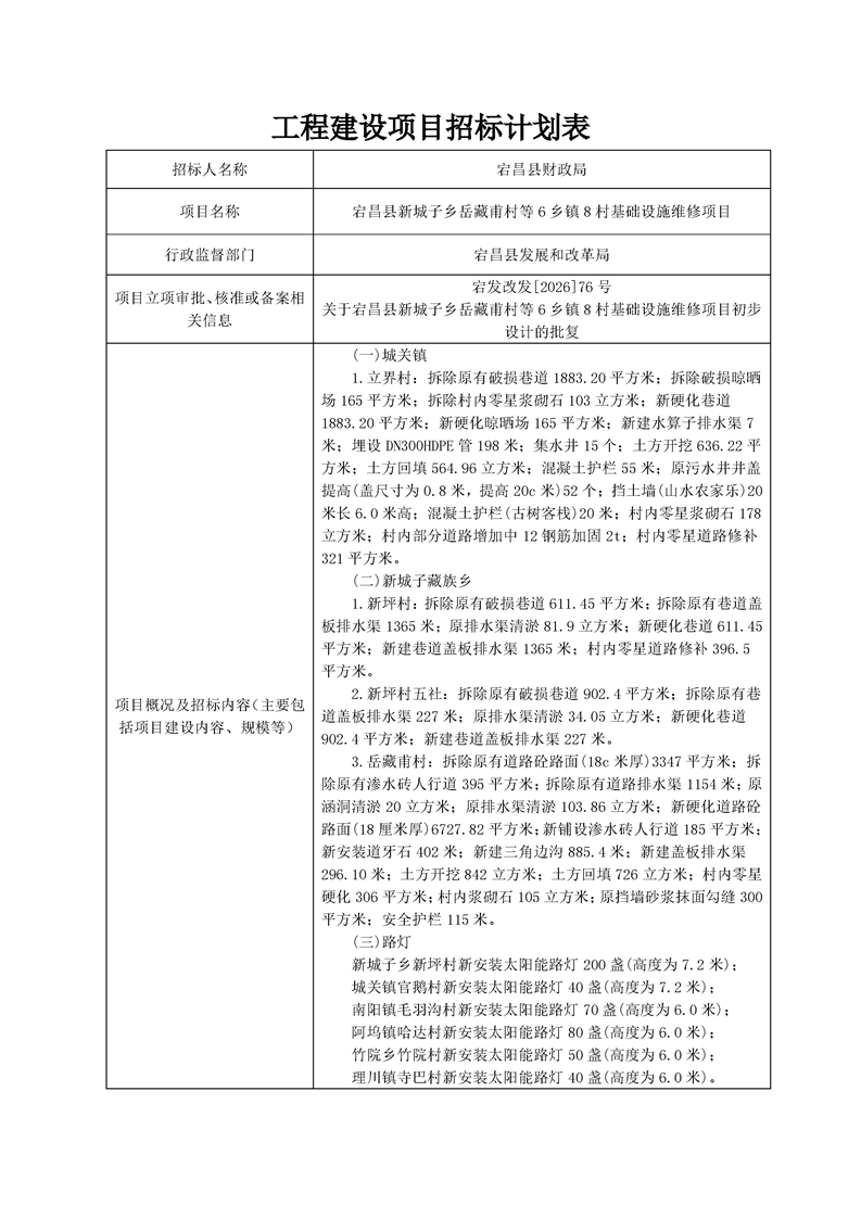 宕昌縣新城子鄉(xiāng)岳藏甫村等6鄉(xiāng)鎮(zhèn)8村基礎設施維修項目